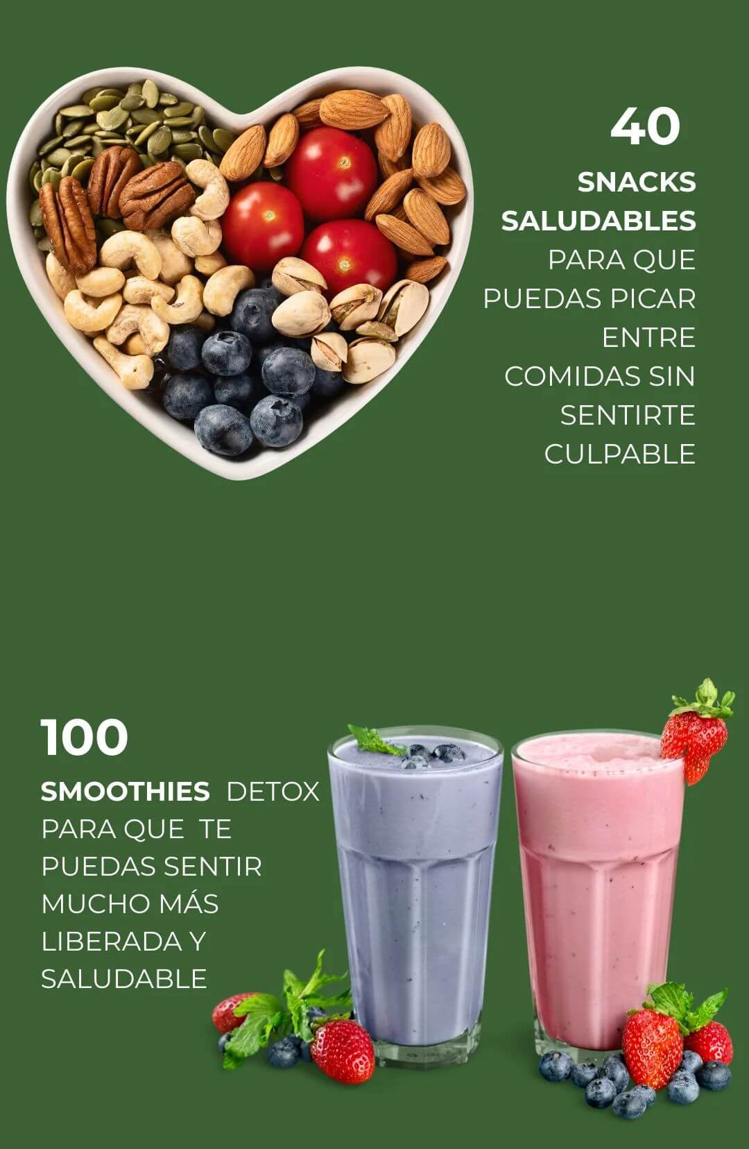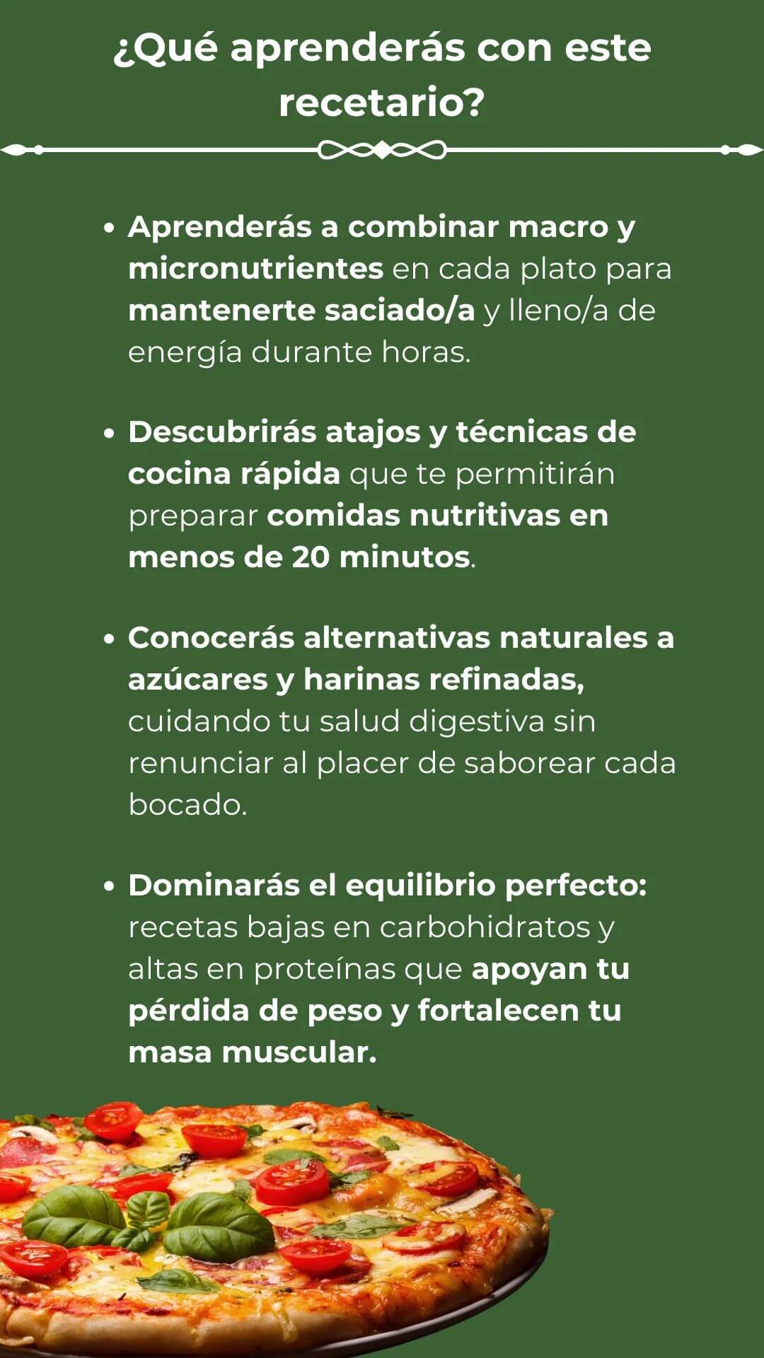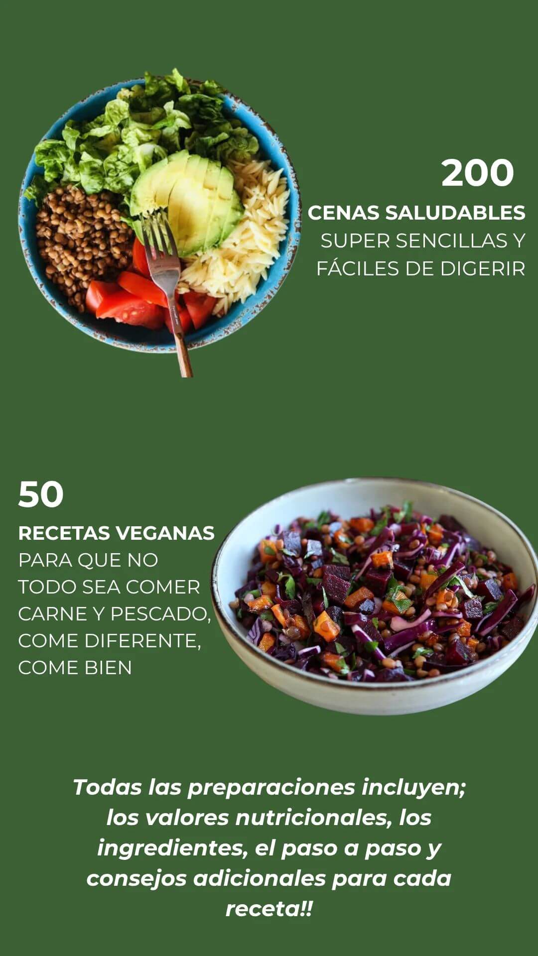 Todo lo contrario. No hay alimentos prohibidos, no hay hambre, no hay culpa. Son más de 300 recetas para que comas rico, variado y sin inflamarte. La idea es que disfrutes, no que sufras.